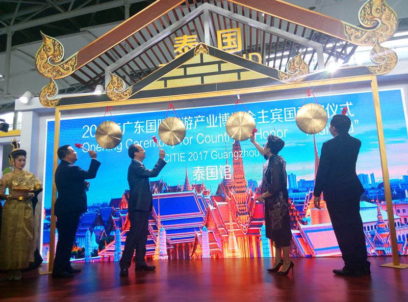 2017廣東國際旅游產業博覽會(廣東旅博會)主賓國泰國11月15日晚宣布正式啟動“2018神奇泰國旅游年”,以繼續推進旅游業在新一年的發展,并計劃向對泰國旅游業貢獻最大的中國游客提供保險等旅游服務。